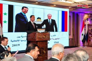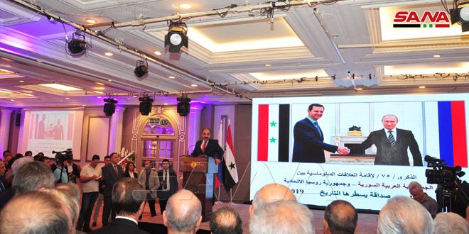 وتخلل الحفل عرض فيلم قصير عن العلاقات الدبلوماسية بين سورية وروسيا.