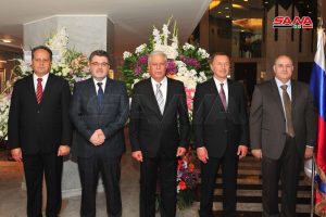من جانبه أكد سفير روسيا الاتحادية بدمشق ألكسندر يفيموف أن سورية كانت ولا تزال أحد أهم الشركاء والحلفاء لروسيا في المنطقة، مشيراً إلى أن مواقف البلدين متطابقة تجاه القضايا الاقليمية والدولية وأن دبلوماسييهما ينسقون للدفاع عن مصالح البلدين في المحافل الدولية المختلفة ولا سيما في الأمم المتحدة.