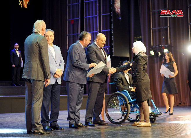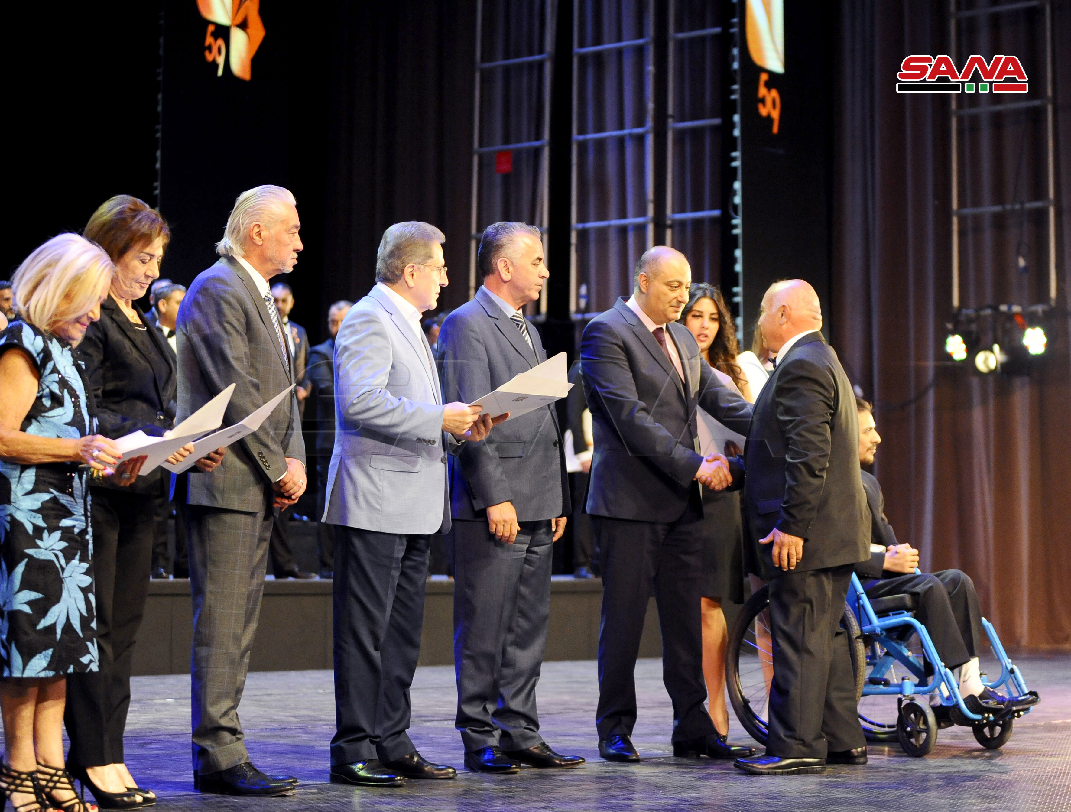 واختتم الحفل بتكريم جرحى الإعلام السوري الذين واكبوا تغطية الحرب على سورية وكانت كاميراتهم وأقلامهم ترافق بندقية الجندي العربي السوري في مواجهة الإرهاب إضافة إلى تكريم عدد من الإعلاميين المخضرمين الذين كانوا من مؤسسي التلفزيون السوري منذ بداياته.