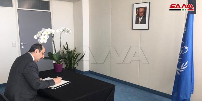 جاء ذلك في الكلمة التي قام بتسجيلها السفير بسام الصباغ مندوب سورية الدائم لدى الوكالة خلال تقديمه واجب العزاء باسم حكومة الجمهورية العربية السورية صباح اليوم بوفاة أمانو.