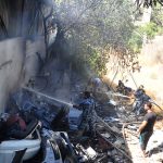 ونشب الحريق في حديقة خلفية لبيت مهجور في شارع فلسطين بحي الحلبوني يفصلها جدار إسمنتي عن تجمع محلات لتصليح السيارات.