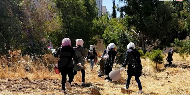 نفذ طلبة كلية التربية الرابعة في القنيطرة بالتعاون مع مديرية البيئة والاتحاد الوطني لطلبة سورية اليوم حملة نظافة ويوما بيئيا توعويا في الحي الخدمي بمدينة البعث.
