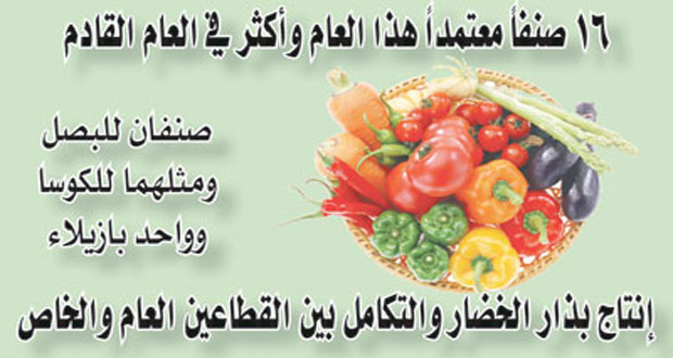 و عن بذار الخضار المستنبطة وكيفية إكثارها أوضح المهندس القادري أن الوزارة سبق أن أصدرت قراراً حددت فيه آلية ترخيص شركات إنتاج البذار بما يضمن حفظ حقوق الجهة المستنبطة وحماية براءة الاستنباط منوهاً أن إصدار القرار في ظل اعتماد أصناف لبذار الخضار المستنبطة يعزز العلاقة المشتركة بين القطاعين العام والخاص للنهوض بالواقع الزراعي ويظهر أهمية العمل المتكامل بين الفعاليات المختلفة لتأمين البذار محلياً والاستغناء عن الاستيراد.