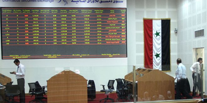 وارتفعت بنتيجة تداولات هذا الأسبوع أسهم خمس شركات وهي بنك البركة بنسبة 13ر1 بالمئة وأغلق على سعر 75ر925 ليرة وفرنسبنك بنسبة 12ر7 بالمئة وأغلق على سعر 06ر347 ليرة وسهم بنك قطر الوطني بنسبة 08ر15 بالمئة وأغلق على سعر 42ر380 ليرة وسهم بنك سورية الدولي الاسلامي بنسبة 78ر4 بالمئة وأغلق على سعر 19ر721 ليرة وبنك سورية والخليج بنسبة 98ر4 بالمئة وأغلق على سعر 50ر147 ليرة وبينما انخفض سهما الأهلية للزيوت النباتية وبنك الشام لم تسجل الشركات الـ19 المدرجة في السوق أي تعديل على أسعارها وأغلقت مساوية لأسعار الإغلاق السابق.