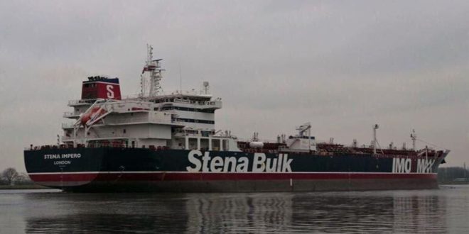 وكان الحرس الثوري الإيراني أعلن مؤخراً في بيان توقيف ناقلة نفط بريطانية في مضيق هرمز ونقلها إلى السواحل الإيرانية لعدم مراعاتها القوانين الدولية البحرية.