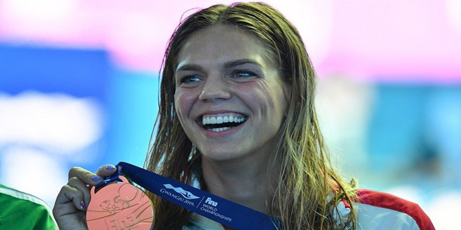 يشار إلى أن هذه هي الميدالية الثانية للسباحة الروسية البالغة من العمر 27 عاماً في هذه البطولة بعد فضية 100 متر سباحة على الصدر.