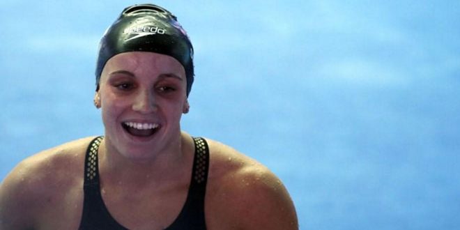وكان مواطنها كاليب دريسل حطم قبلها الرقم القياسي العالمي لسباق 100 متر فراشة رجال في الدور قبل النهائي للسباق أيضا.
