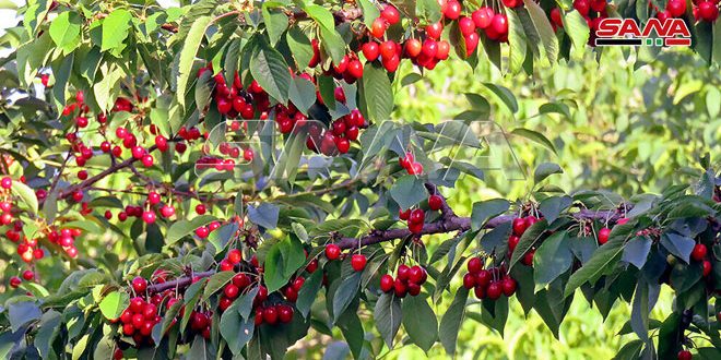 قدرت مديرية زراعة حمص إنتاج المحافظة من الكرز بـ 7598 طنا خلال الموسم الحالي من إجمالي المساحة المزروعة البالغة 7331 دونما مروية وبعلية.