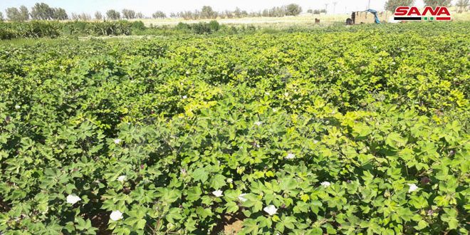 وبين رئيس الدائرة المهندس جلال بلال في تصريح لمراسل سانا أن الحالة العامة لمحصول القطن جيدة في هذه الفترة وأن أعمال السقاية مستمرة والطور الفيزيائي للنبات في مرحلة الجوزة لافتا إلى عدم وجود أي إصابات حشرية أو آفات زراعية في المساحات المزروعة باستنثاء مناطق محددة ولا تشكل خطورة.