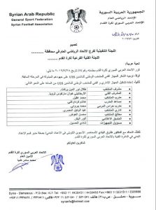 وأعاد الاتحاد وفق قرار صادر عنه تشكيل الكادرين الفني والإداري لمنتخب الناشئين بإشراف عضو اتحاد اللعبة طلال بركات إضافة إلى الأرجنتيني ترويا مشرفا فنيا ومحمد عقيل مدربا وهشام كردغلي مساعدا للمدرب ومحمد بيروتي مدربا لحراس المرمى والدكتور البناي مدربا للياقة البدنية وعبد الوكيل المصري إداريا ومحسن العوض معالجا وأنور البكر منسقا إعلاميا وشادي الحسين مسؤولا للتجهيزات.