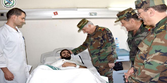 بتوجيه من الرئيس الأسد.. العماد أيوب يزور المقاتلين في مواقعهم وجرحى الجيش