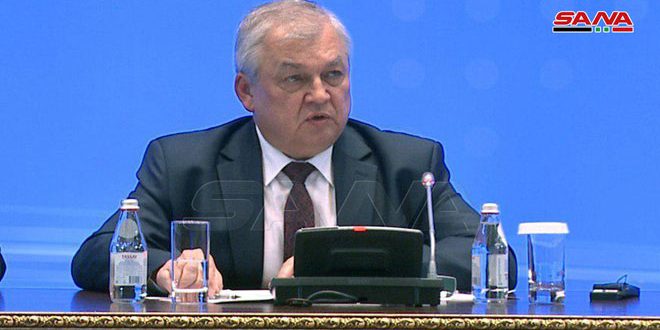 وشدد لافرنتييف على ضرورة إنهاء الوجود الأجنبي غير الشرعي في سورية وقال: “على الولايات المتحدة والدول الأوروبية الموجودة في سورية بشكل غير شرعي والتي تتذرع بأنها تكافح تنظيم “داعش” والتنظيمات الإرهابية الأخرى لتنفيذ أهدافها ومصالحها الضيقة الانسحاب فوراً من الأراضي السورية”.