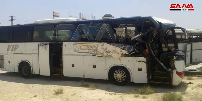 وأوضح رئيس مركز شرطة الطرق العامة في منطقة النبك المقدم حسام عباس في تصريح لمندوبة سانا أن حافلة بولمان قادمة باتجاه دمشق صدمت صهريجاً محملاً بـ 50 طناً من مادة الفيول قرب بلدة القسطل بمنطقة النبك.