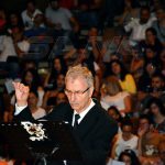 حفل الافتتاح الذي جاء بعنوان “قصائد” بقيادة المايسترو بيرج قسيس والذي اختار البدء بمقطوعة موسيقية “سماعي نهاوند” من تأليف محمود العجان كتحية لروحه احتفى بالشعر والشعراء السوريين من خلال أعمال موسيقية غنائية من قصائدهم ..”أجمل ما تكون” لـ أدونيس و”أنت قيدي” و”قالت الغيمة” و”معنى على التل” لـ صقر عليشي و”عليا” لـ عبد الله شاهين و”خليكي عم تضحكي” للفنان التشكيلي علي الشيخ ومروان دريباتي إضافة إلى “ما بكون أنا وياك” و”وطني حبيبي” لـ مروان دريباتي مع تقديم غنائي مميز بصوتي جورج حداد ويارا شقرا لرسالة بعل “حطم سيفك واحمل معولك واتبعني”.