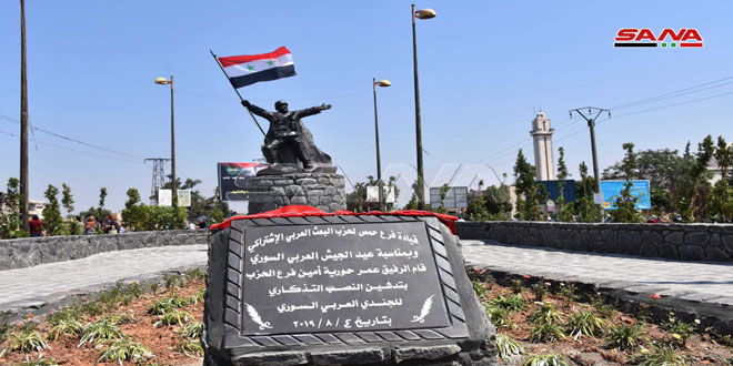 احتفاء بالذكرى الـ74 لتأسيس الجيش العربي السوري وتقديرا للتضحيات والبطولات التي قدمها في سبيل الذود عن حياض وسيادة الوطن تم اليوم إزاحة الستار عن النصب التذكاري للجندي العربي السوري وسط دوار 8 آذار في المدخل الجنوبي لمدينة حمص.
