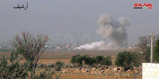 أعلن مصدر عسكري عن تنفيذ وحدات الجيش العاملة في ريف حماة الشمالي ضربات بسلاح المدفعية على مقار التنظيمات الإرهابية ردا على خروقاتها المتكررة لوقف إطلاق النار.