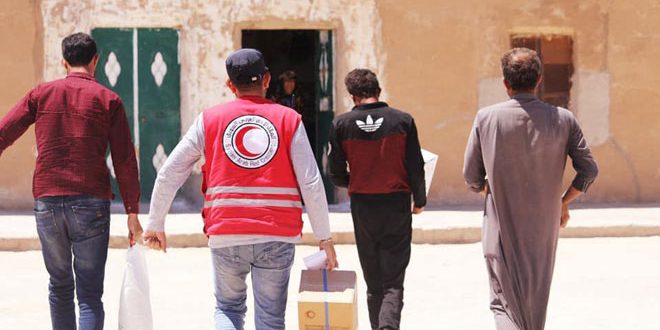 وزع فرع منظمة الهلال الاحمر العربي السوري مواد اغاثية للريف والتجمعات السكانية التابعة لناحية مركدا بريف الحسكة الجنوبي.