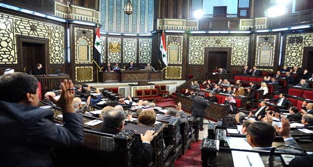 استمع مجلس الشعب في جلسته التي عقدها اليوم برئاسة محمد جهاد اللحام رئيس المجلس الى تقرير لجنة الموازنة والحسابات حول مشروع قانون الموازنة العامة للدولة لعام 2015 والمقدرة بـ 1554 مليار ليرة بزيادة قدرها 164 مليار ليرة عن موازنة عام 2014.