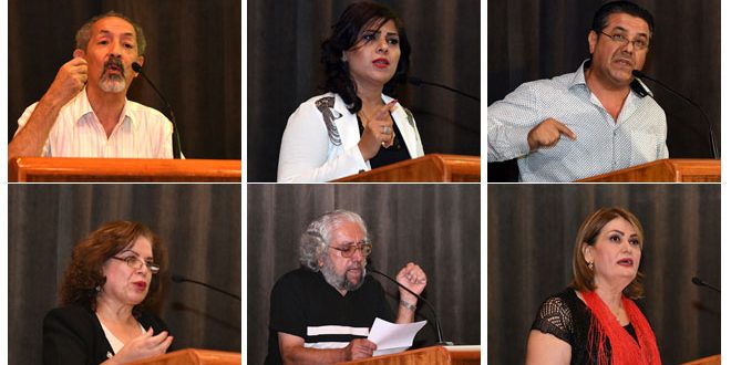 النصوص التي ألقاها الشعراء غلب عليها الجانب الوطني ومواجهة الغزو الثقافي والمؤامرة على سورية عبر أشكال متنوعة من شعر الشطرين إلى النثر.