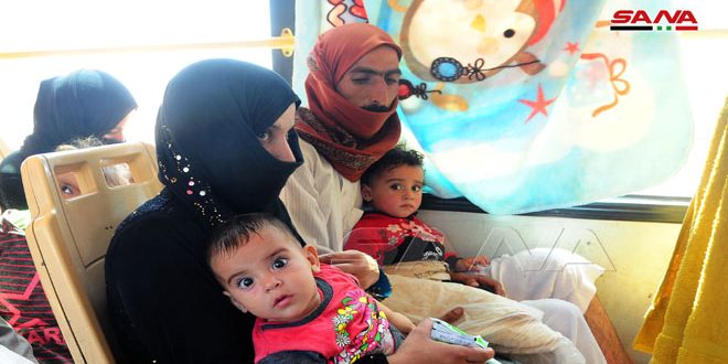 عادت اليوم عشرات الأسر المهجرة قادمة من مخيم الركبان بمنطقة التنف بعد سنوات من الاحتجاز والتهجير القسريين بفعل الإرهاب وقوات الاحتلال الأمريكي ومجموعات إرهابية تدعمها وذلك في إطار الجهود التي تبذلها الدولة لإعادة المهجرين إلى المناطق التي طهرها الجيش العربي السوري من الإرهاب.