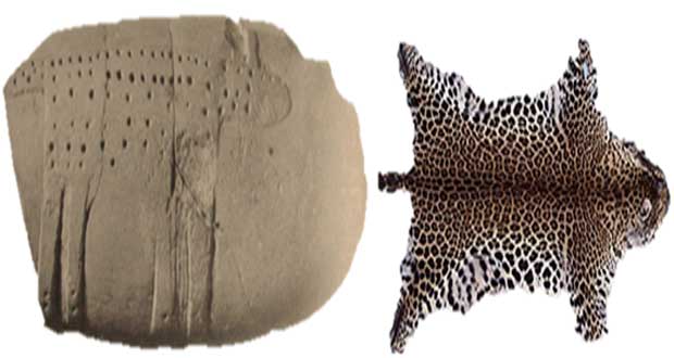 وأوضح المؤرخ أن النمر المرقط قد صور في هذا النحت كرمز للأناقة والرشاقة والشجاعة والدهاء والنبل والقوة فالنمر المرقط حيوان متسلل هادئ ومتسلق ماهر للأشجار وقوي جدا يقتل طريدته خنقا عبر عضة في العنق وقادر على قتل طرائد تفوقه حجما بأشواط بفضل جمجمته الكبيرة التي تحوي عضلات فك قوية جدا وقادر على رفع طرائد تفوقه وزنا بثلاثة أضعاف إلى الأشجار لحمايتها من الحيوانات القمامة كالضباع.