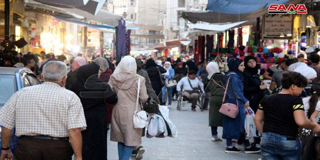 حركة نشطة تشهدها أسواق حلب من قبل أهالي المدينة الذين أقبلوا على شراء حاجيات العيد من ملابس وحلويات والفرحة تملأ قلوبهم مع عودة الأمن والأمان لمعظم الأحياء التي عانت من الإرهاب ولأسواق نفضت عنها غبار الإرهاب لتنبض بالحياة من جديد معلنة انتصار إرادة الحياة والخير على الدمار والشر.