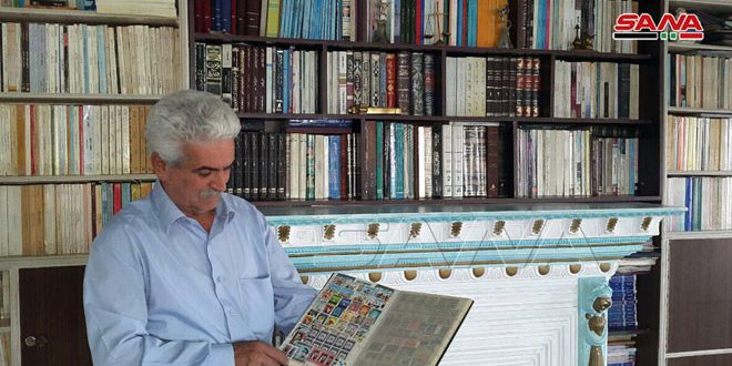 تضم مكتبة محمد توفيق العريضي نحو ثلاثة آلاف كتاب و25 ألف طابع ضمن منزله بمدينة شهبا بالسويداء والتي أسسها على مدار سنوات.