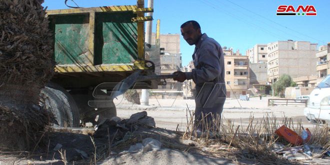 بدوره أوضح رئيس دائرة الخدمات بمجلس مدينة دير الزور المهندس عيسى درويش أنه تم تقسيم المدينة إلى عدة قطاعات وتشكيل فرق عمل من الجهات المشاركة وزج جميع الآليات المتوفرة لتغطية جميع الأحياء فيما شارك فرع الشبيبة بتنظيف منطقة دوار الجندي المجهول داعيا الأهالي إلى المساهمة في هذه الحملة والتعاون مع ورشات النظافة من خلال التقيد بمواعيد وأماكن رمي القمامة .