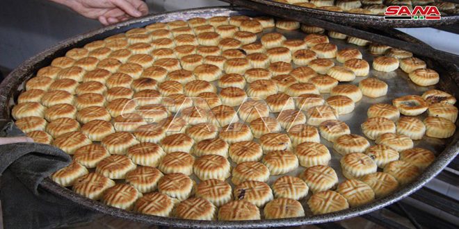 ويبين الشاب رياض قوجة صاحب فرن لخبز كعك العيد أن وجود الكعك والمعمول الحلبي وأقراص التمر عادة قديمة لدى أهالي حلب فهي مكون أساسي في الأعياد لضيافة الزوار وتعد بحد ذاتها بهجة للعيد في حين يتحدث ماجد كريم العامل في الفرن عن مكونات الكعك والمعمول من طحين وسميد وحليب ومحلب وحبة البركة والسمن وماء الجبن والتمر وطريقة التحضير للحصول على حلويات تمتاز بنكهات مميزة جدا.