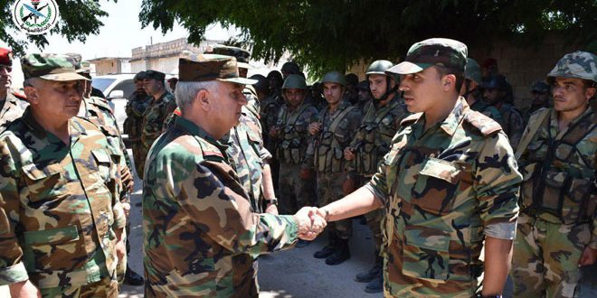 والتقى العماد أيوب المقاتلين الذين دحروا الإرهابيين من الهبيط بعد أن ألحقوا خسائر كبيرة في صفوفهم وشد على زنودهم المفتولة مهنئا الجميع بعيد الأضحى المبارك وبالانتصارات التي تتحقق على التنظيمات الإرهابية وداعميها.