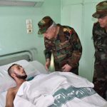 وزار العماد أيوب الجرحى في مشفى الشهيد عبد القادر شقفة في حمص وهنأهم بالسلامة وَبعيد الأضحى المبارك واستمع منهم إلى ظروف إصابتهم كما استمع من الكادر الطبي إلى شرح تفصيلي عن الوضع الصحي لكل منهم مثمناً الروح المعنوية العالية التي يتمتعون بها وحرصهم على إتمام العلاج بأسرع ما يمكن للعودة إلى ميادين القتال والقضاء على ما تبقى من الإرهاب التكفيري.