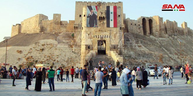 ويبين العم أحمد عاشور لمراسلة سانا جمالية قلعة حلب المزدانة بألوان العيد فيما تؤكد زوجته منى أنها في كل عام تأتي للتمتع بأجواء الأعياد ومشهد قلعة حلب الشامخة والاستماع إلى القدود والموشحات و بعودة أناشيد الفرح الى حلب.