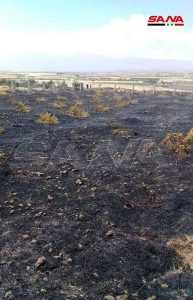 مدير الزراعة والإصلاح الزراعي بالقنيطرة المهندس شامان الجمعة قال في تصريح لـ سانا إن النيران أدت إلى تضرر محصول القمح في أراضي مساحتها 80 دونما لافتا إلى أن سرعة الرياح في المنطقة تسببت بانتشار النيران في الحقول.