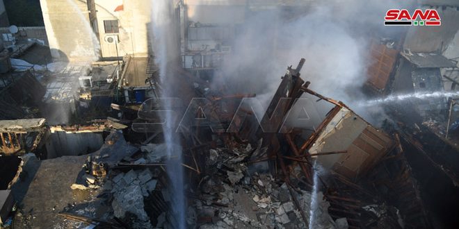 أخمد عناصر فوج إطفاء دمشق بالتعاون مع الدفاع المدني الحريق الذي تجدد في منزل قديم في منطقة الحلبوني بدمشق مخلفا أضراراً كبيرة بالمنزل وبآخر مجاور.