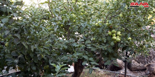 وحول واقع محصول التفاح في المحافظة بين رئيس دائرة الأشجار المثمرة بمديرية الزراعة المهندس قيس غزال في تصريح لنشرة سانا الاقتصادية أن غالبية المساحات المزروعة بالتفاح هي في المناطق الجبلية المرتفعة وتبلغ المساحة المزروعة بأشجار التفاح على مستوى المحافظة 1769هكتارا وعدد الأشجار أكثر من 567 ألف شجرة منها 492 ألف شجرة مثمرة ويقدر الإنتاج بـ 32563 طنا في الموسم الحالي وأهم أصنافه الغولدن والستاركن.