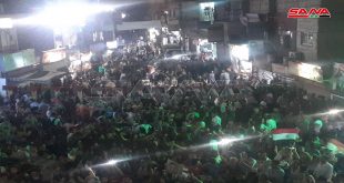 دمشق–سانا “قيامة وطن.. انتصار القرار السوري” جملة عبر من خلالها أهالي منطقة حي الورود بدمشق عن فرحهم الكبير بإنجاز الاستحقاق الدستوري وفوز الدكتور بشار الأسد بمنصب رئاسة الجمهورية من خلال حفل جماهيري بأجواء من الفرح والبهجة وترديد الهتافات والأغاني الوطنية. …