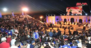 السويداء-سانا بمشاركة كبيرة من الفعاليات الشبابية والشعبية نظم فرع منظمة اتحاد شبيبة الثورة في السويداء مساء اليوم حفلاً فنياً بمناسبة إنجاز الاستحقاق الدستوري وفوز الدكتور بشار الأسد بالانتخابات الرئاسية وذلك على مدرج حديقة الفيحاء بمدينة السويداء. وتضمن الحفل الذي رافقه …