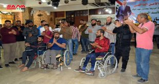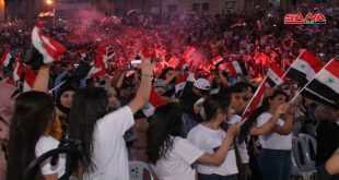 الحسكة-سانا نظم جرحى الجيش العربي السوري وقوى الأمن الداخلي والقوى الرديفة بالحسكة فعالية وطنية تخللها حفل فني بمناسبة إنجاز الاستحقاق الرئاسي وفوز الدكتور بشار الأسد بانتخابات رئاسة الجمهورية. ورفع المشاركون في الحفل الأعلام الوطنية وصور الرئيس الأسد واللافتات التي تعبر …