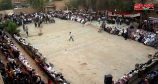 دير الزور-سانا ابتهاجاً بنجاح الاستحقاق الدستوري وفوز الدكتور بشار الأسد بمنصب رئيس الجمهورية أقامت عشائر منطقة الميادين فعالية شعبية بمشاركة وفود من كل العشائر تضمنت إلقاء قصائد شعرية وحفلاً فنياً أحيته نخبة من الفنانين الشباب. وحمل المشاركون في الفعالية التي …