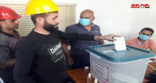 حمص-سانا على وقع صوت عجلات الإنتاج في مدينة حسياء الصناعية بحمص احتشد آلاف العمال للإدلاء بأصواتهم في الانتخابات الرئاسية واختيار المرشح الأنسب للمرحلة القادمة. وأعرب عدد من الصناعيين والعمال في منشأة المتين بالمنطقة الكيميائية لمراسلة سانا أنهم شاركوا بالانتخابات وكلهم …