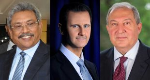 دمشق-سانا تلقى السيد الرئيس بشار الأسد برقيتي تهنئة من رئيسي أرمينيا أرمين ساركيسيان وسريلانكا غوتابايا راجاباكسا بمناسبة فوزه في انتخابات رئاسة الجمهورية. وجاء في برقية الرئيس الأرميني: أتقدم إليكم بخالص التهنئة الحارة بمناسبة إعادة انتخابكم رئيساً للجمهورية العربية السورية. وأضاف …