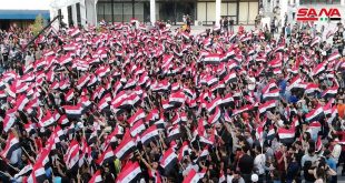 ريف دمشق-سانا ابتهاجاً بفوز الدكتور بشار الأسد بالانتخابات الرئاسية نظم المجلس البلدي في بلدة السبينة للنازحين بريف دمشق احتفالية فنية تخللتها عروض غنائية ولوحات راقصة من الفلكلور الشعبي ومسيرة جابت شوارع البلدة. وحمل المشاركون في الفعاليتين الأعلام الوطنية وصور الرئيس …