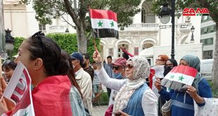 من الفعالية التي نظمها أبناء الجالية السورية وفرع الاتحاد الوطني لطلبة سورية في تونس بمناسبة فوز الدكتور الأسد في الانتخابات الرئاسية