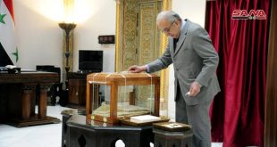 دمشق-سانا واصل أعضاء مجلس الشعب لليوم الخامس على التوالي تقديم التأييدات الخطية للمرشحين للانتخابات إلى منصب رئيس الجمهورية مع وصول عدد طلبات الترشح للرئاسة التي أرسلتها المحكمة الدستورية العليا إلى مجلس الشعب إلى 18 طلباً. وينص قانون الانتخابات العامة على …
