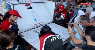 اللاذقية-سانا شاركت فعاليات شعبية ورسمية وحزبية وشبابية في اللاذقية اليوم بالفعالية الوطنية التي أقيمت بعنوان “يلا سوا” لتوقيع أطول رسالة حب ووفاء للجولان العربي السوري المحتل وأهله الصامدين وتأكيداً على هويته العربية السورية وذلك في حديقة العروبة بالمدينة بعد جولة …
