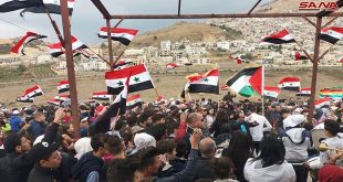 دمشق-سانا تؤكد كل كلمة دونت رفضا للاحتلال واغتصاب الأرض وكل حبة تراب وحجر وصخرة ونبتة شكلت باتحادها الجولان السوري وكل نقطة دم سالت في سبيل تحرير أرض الجولان الطاهرة من طغيان الكيان الصهيوني المحتل وكل نقطة ماء روت عطش السوريين الساعين …
