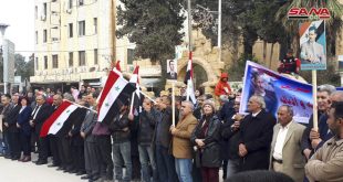 محافظات-سانا واصل أبناء الشعب السوري اليوم في عدد من المحافظات وقفاتهم الاحتجاجية الرافضة والمستنكرة لإعلان الرئيس الأمريكي دونالد ترامب حول الجولان السوري المحتل. ففي مدينة السويداء نظمت فعاليات شبابية وشعبية اليوم وقفة احتجاجية رفضا واستنكارا لإعلان ترامب. وأكد المشاركون بالوقفة …