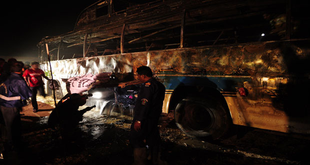 كراتشي-سانا قتل ما لا يقل عن 57 شخصا بينهم نساء واطفال جراء حريق شب في حافلة للركاب كانوا على متنها بعد اصطدامها بصهريج صباح اليوم في ضاحية قرب مدينة كراتشي جنوب باكستان. ونقلت (ا ف ب) عن الطبيب سامي جمالي …