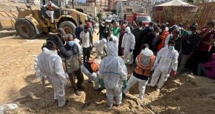 القدس المحتلة-سانا انتشلت طواقم الدفاع المدني في قطاع غزة جثامين 310 شهداء من مقابر جماعية بمجمع ناصر