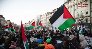 روما -براغ-سانا تظاهر مئات الأشخاص وسط العاصمة التشيكية براغ اليوم، دعماً للشعب الفلسطيني، وتنديداً بالعدوان الإسرائيلي المتواصل